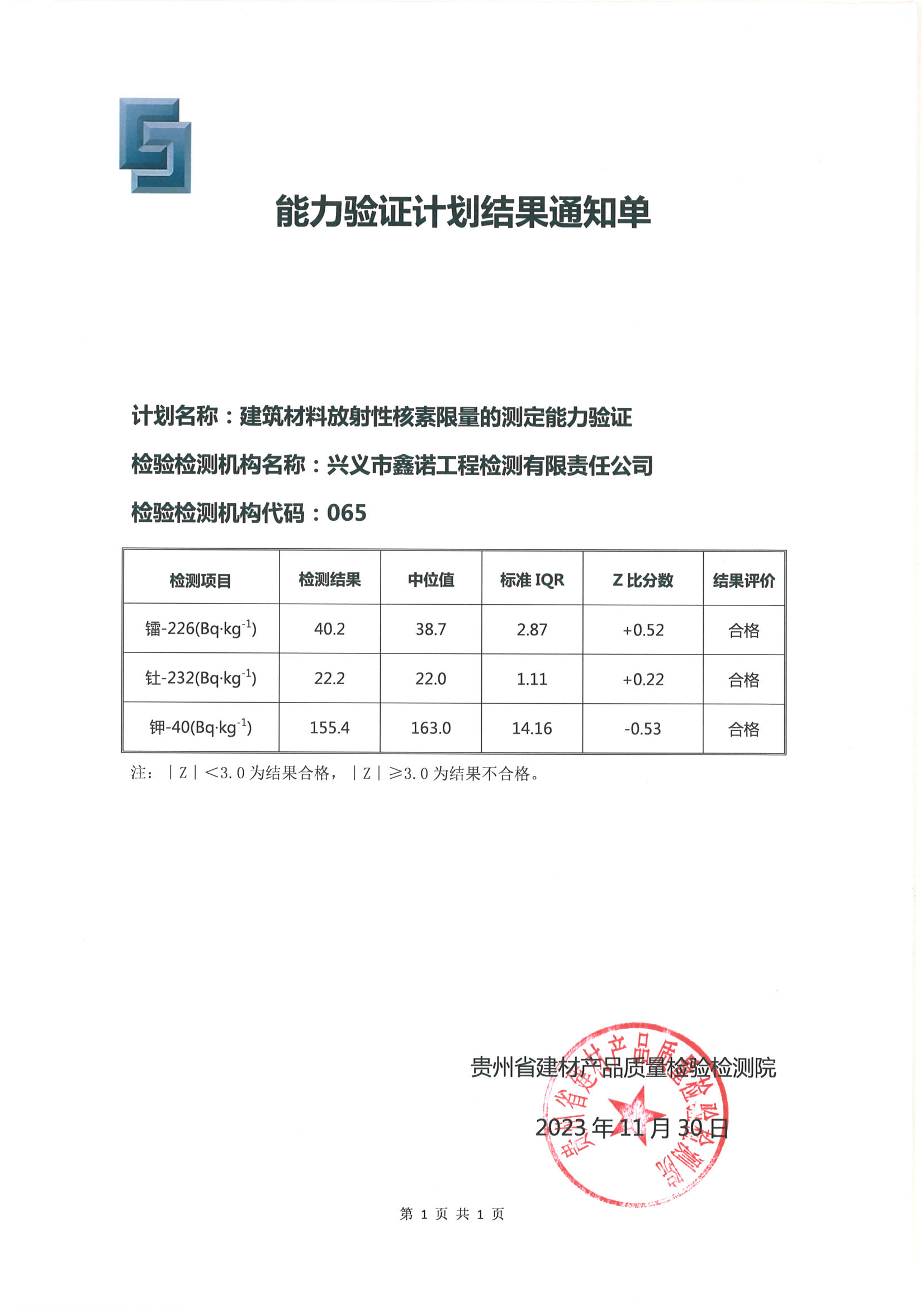 2023年建筑材料放射性核素限量能力验证