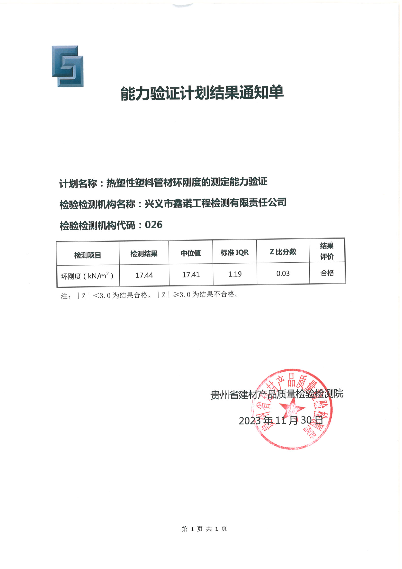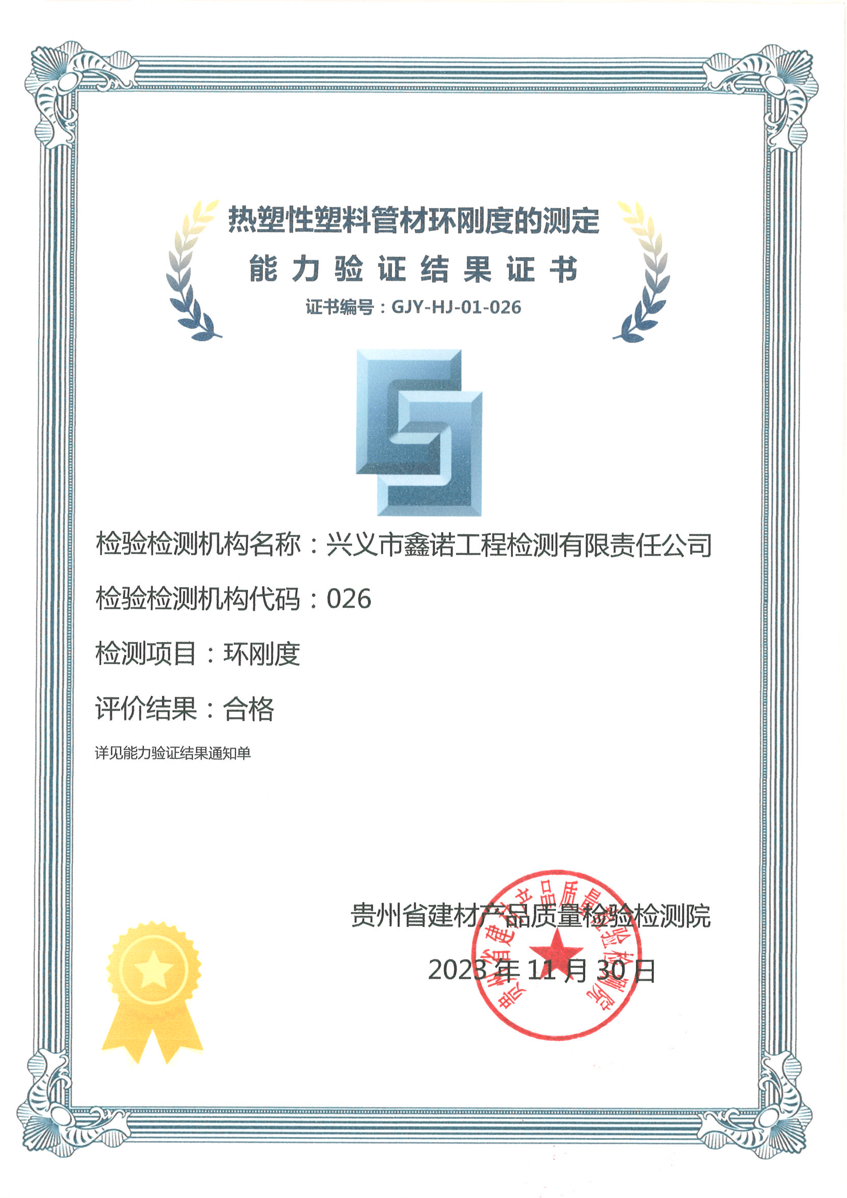 2023年热塑性塑料管材环刚度能力验证