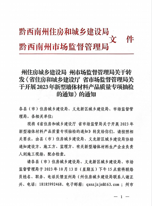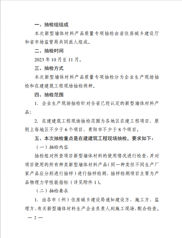 省市场监督管理局关于开展2023年新型墙体材料产品质量专项抽检的通知