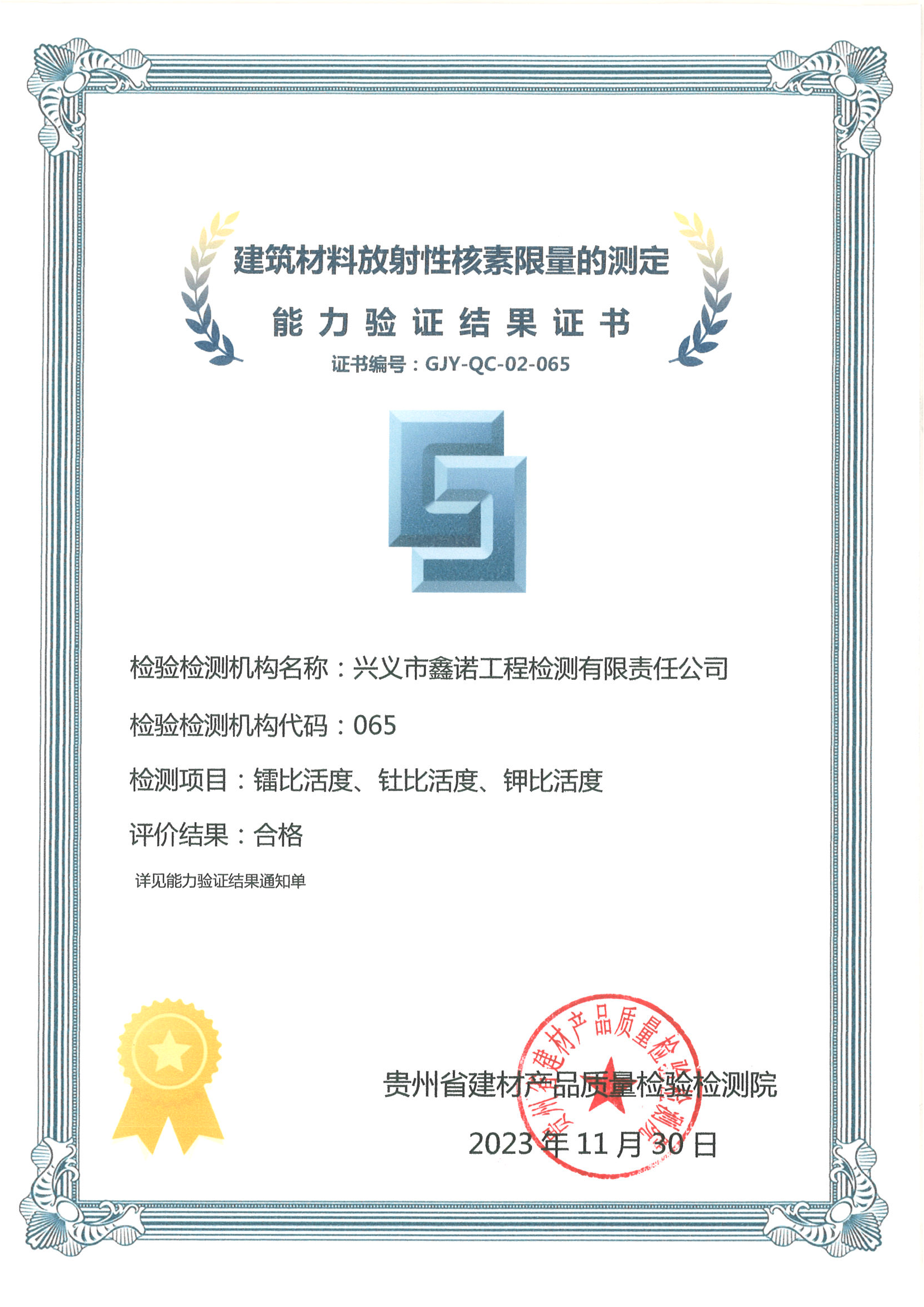 2023年建筑材料放射性核素限量能力验证