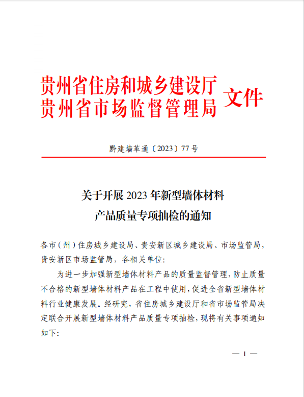 省市场监督管理局关于开展2023年新型墙体材料产品质量专项抽检的通知
